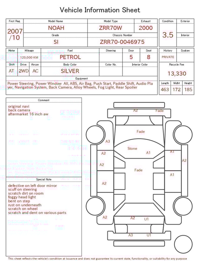 Auction sheet notes