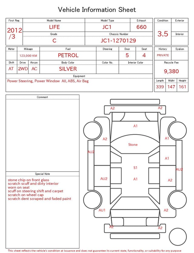 Auction sheet notes