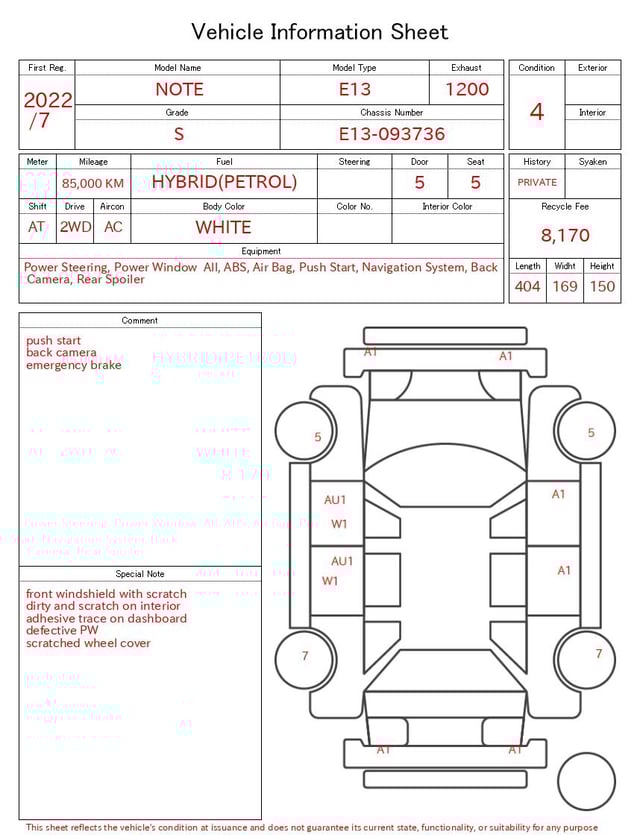 NISSAN NOTE 2022/7 S