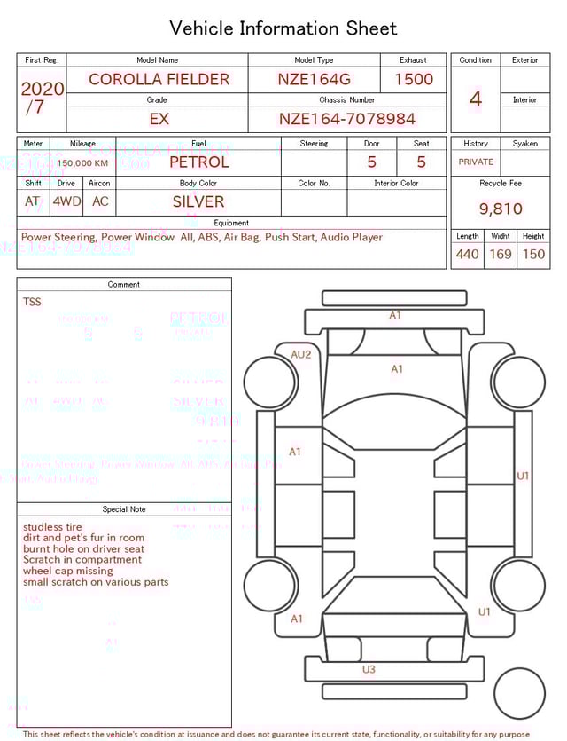 Auction sheet notes