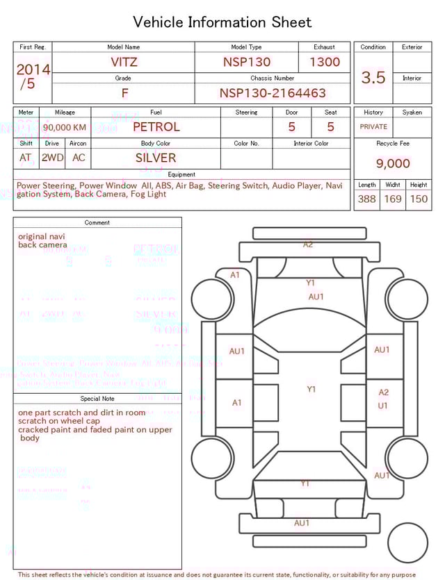 TOYOTA VITZ 2014/5 F