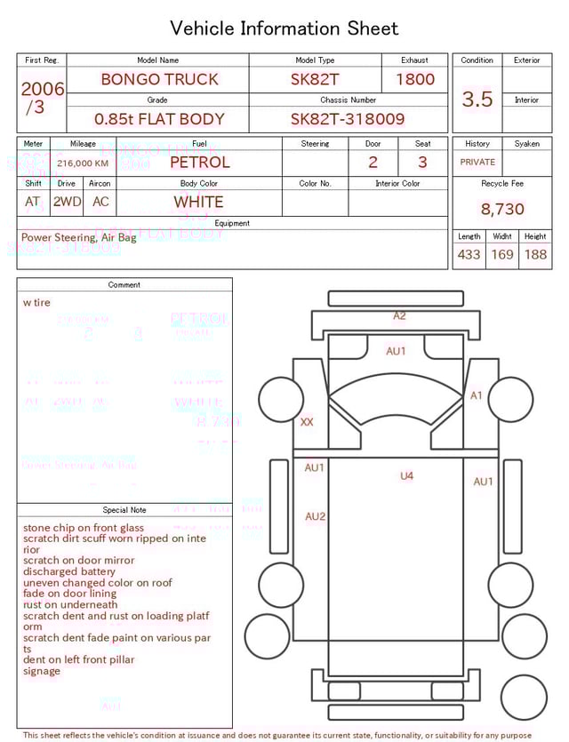 Auction sheet notes