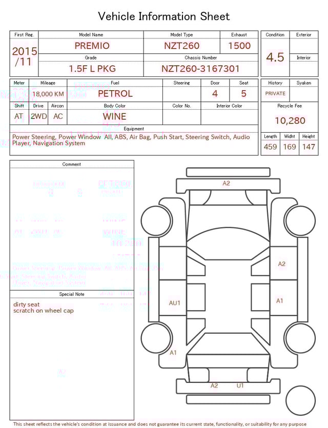 Auction sheet notes