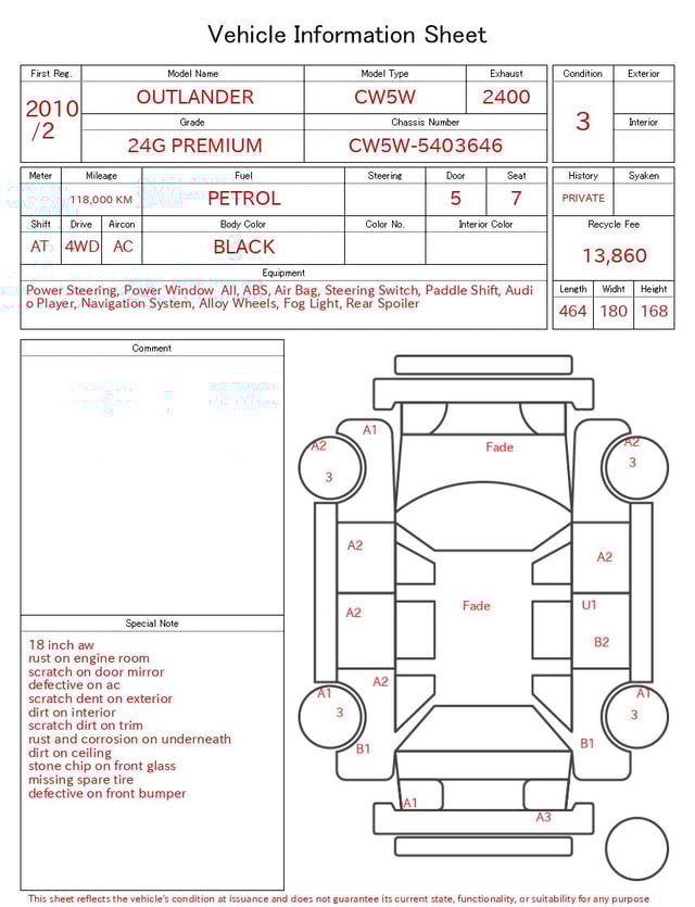 Auction sheet notes