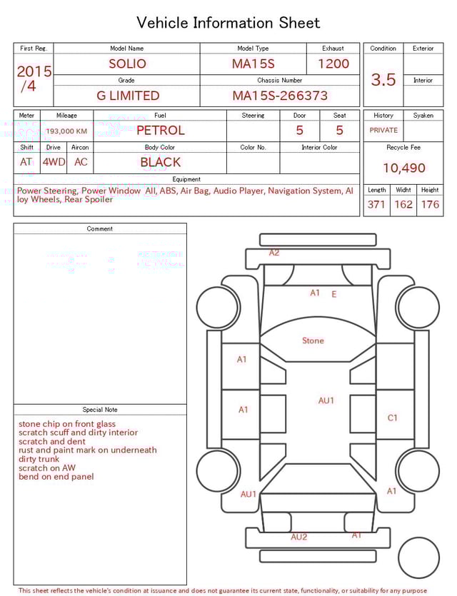 Auction sheet notes