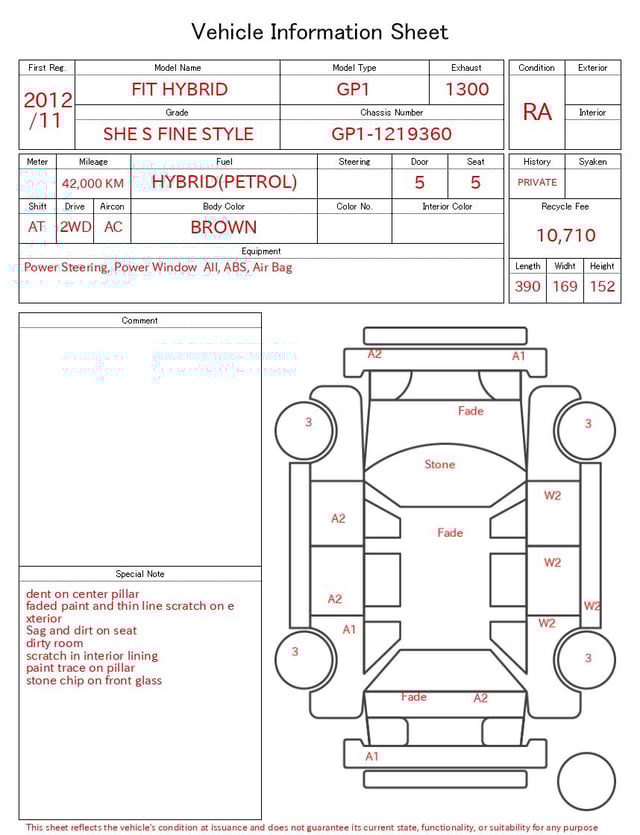 Auction sheet notes