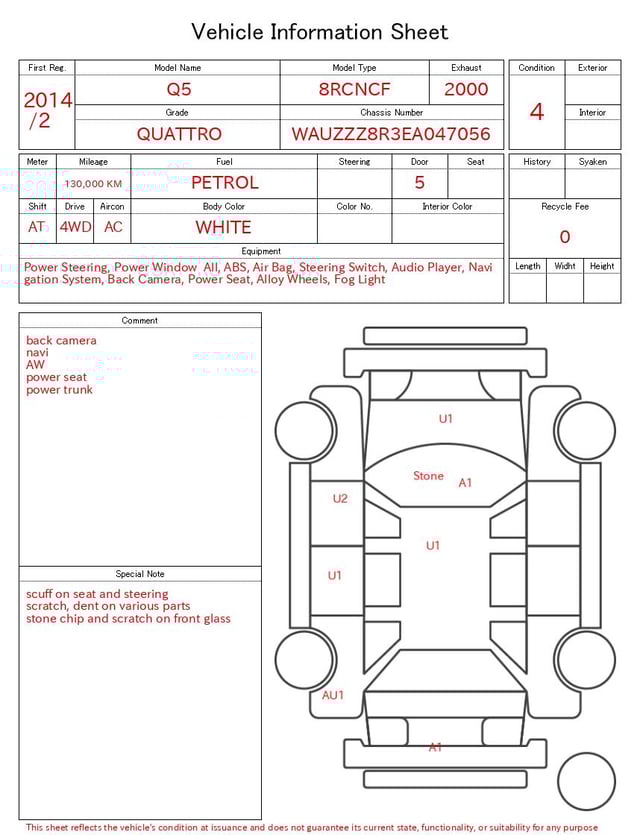 Auction sheet notes