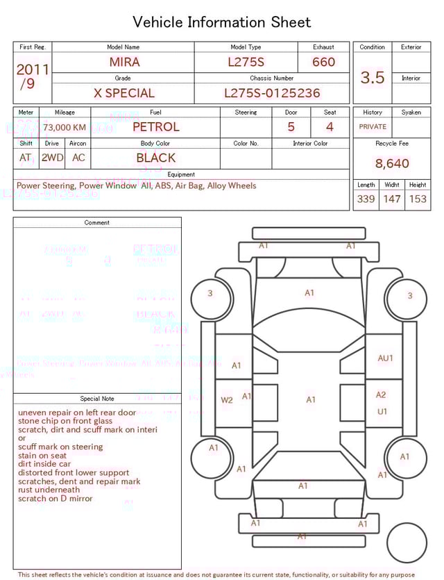 Auction sheet notes