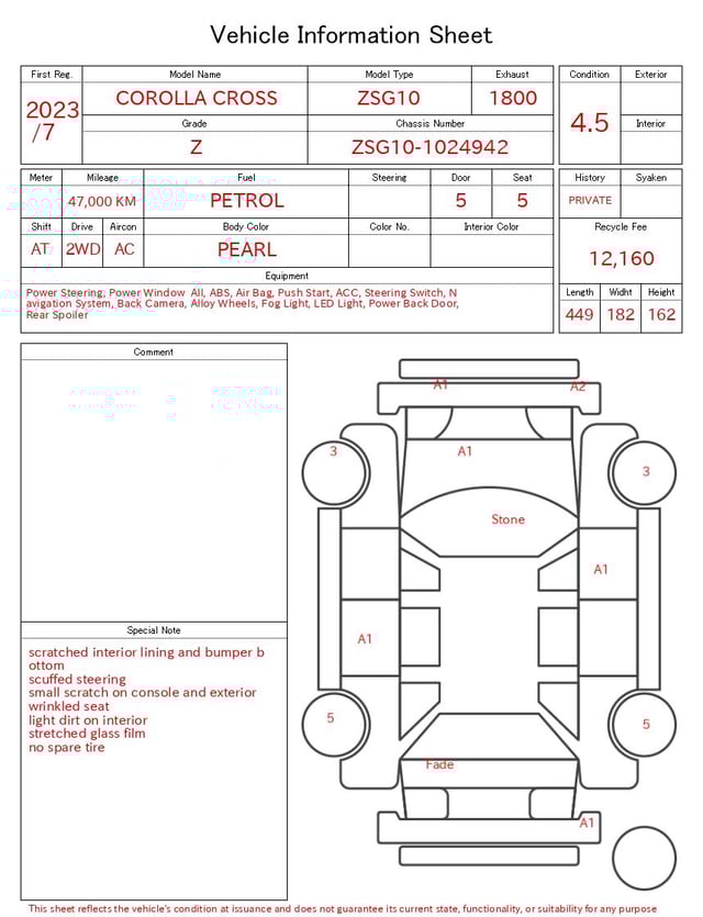 Auction sheet notes