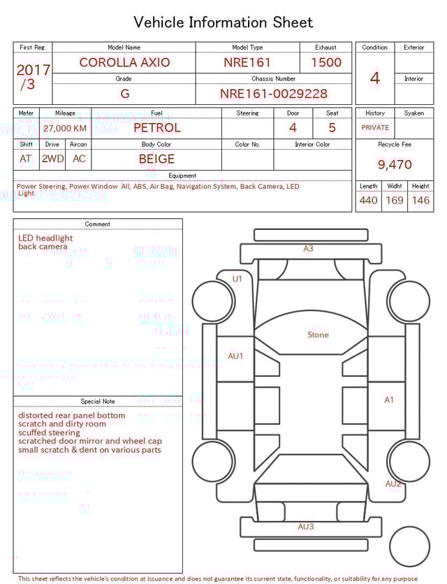 Auction sheet notes