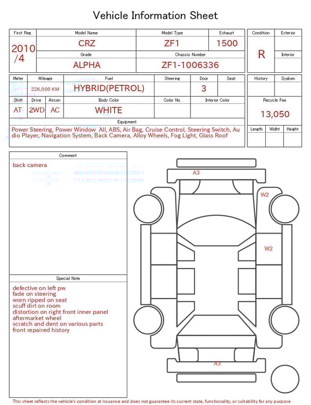 Примечание по аукционному листу