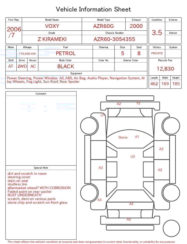 Auction sheet notes