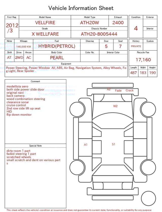TOYOTA VELLFIRE 2012/3 X WELLFARE