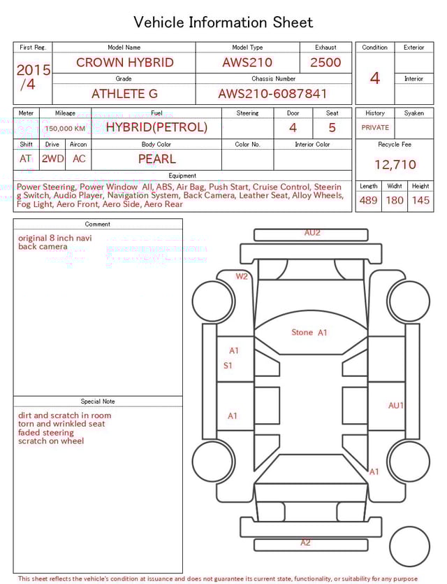 TOYOTA CROWN HYBRID 2015/4 ATHLETE G