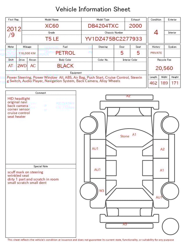Auction sheet notes
