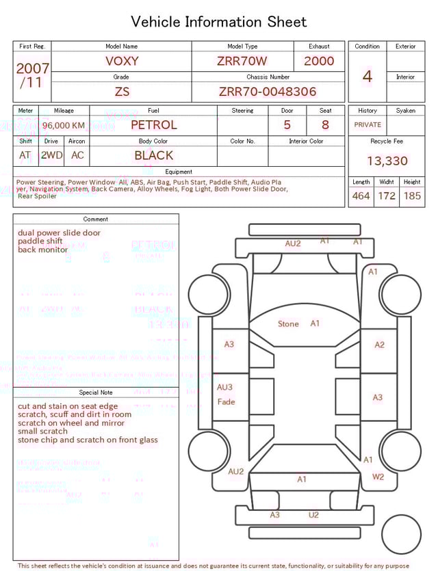 Auction sheet notes