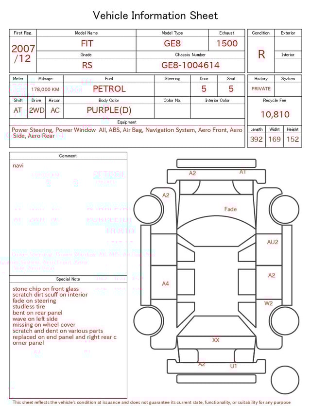 Auction sheet notes