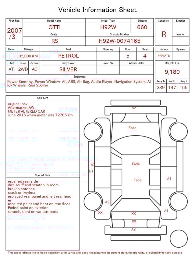 Auction sheet notes